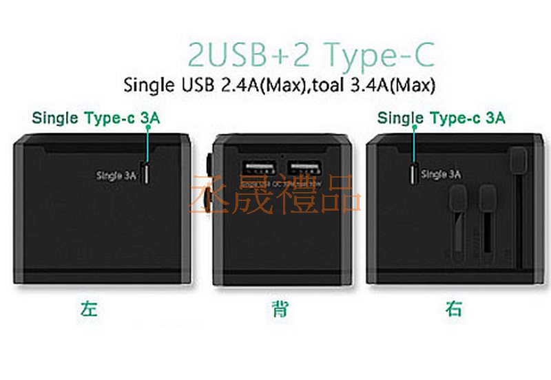 充電口:2USB Single 2.4A +2Type-c Single 3A