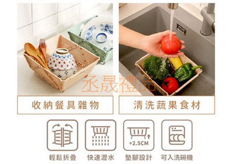 產品資訊: 輕鬆折疊 快速瀝水 墊腳設計 可入洗碗機 收納餐具雜物